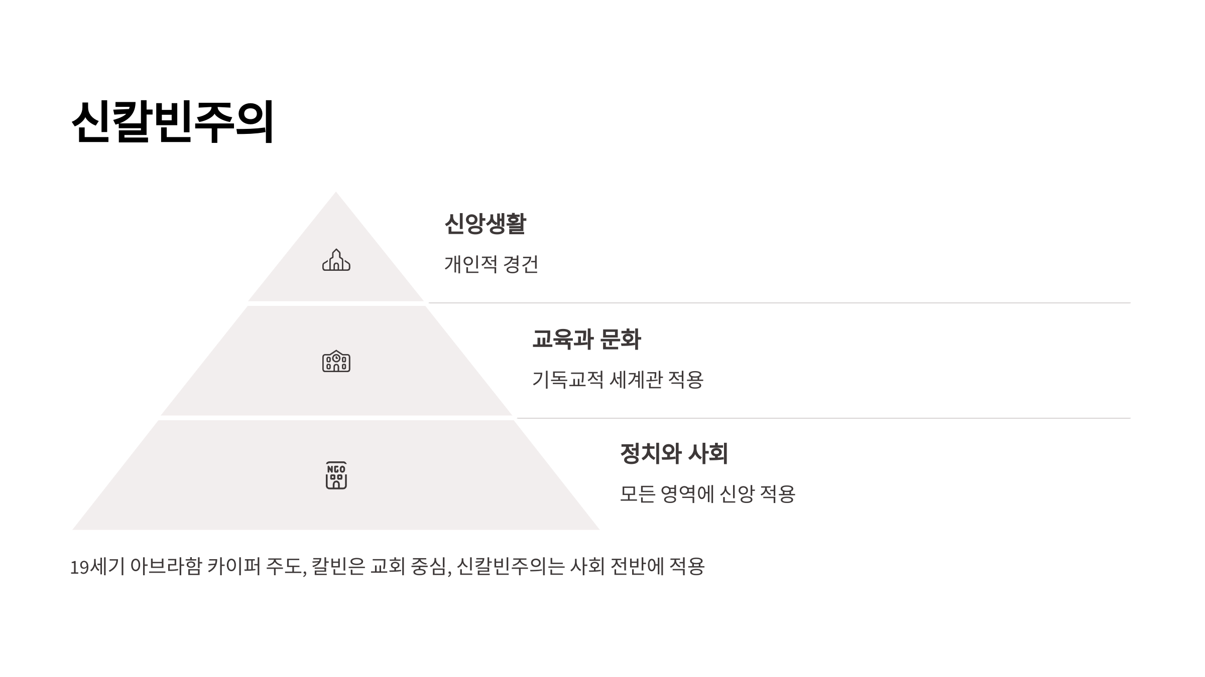 19세기 아브라함 카이퍼에 의해 주도된 이 운동은 칼빈주의를 정치, 교육, 사회 전반에 적용하려 했습니다. 신앙이 사회적 구조 개혁에도 영향을 미쳐야 한다는 것이 핵심입니다.