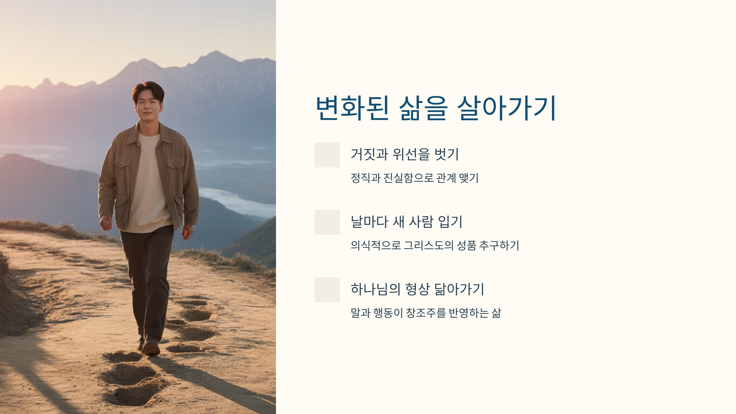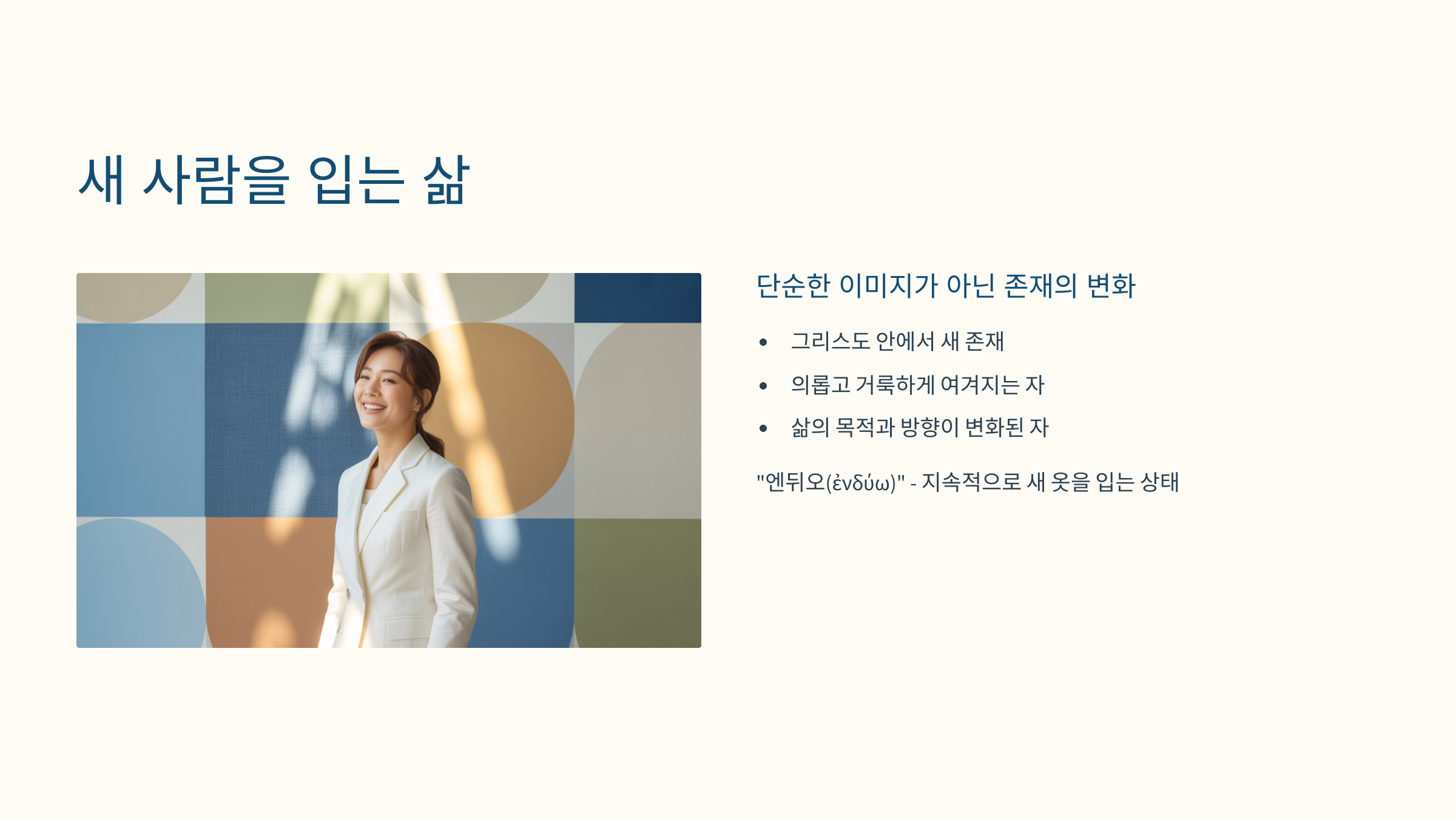‘새 사람’은 단순한 이미지 변화가 아니라, 존재 자체의 변화를 말합니다.