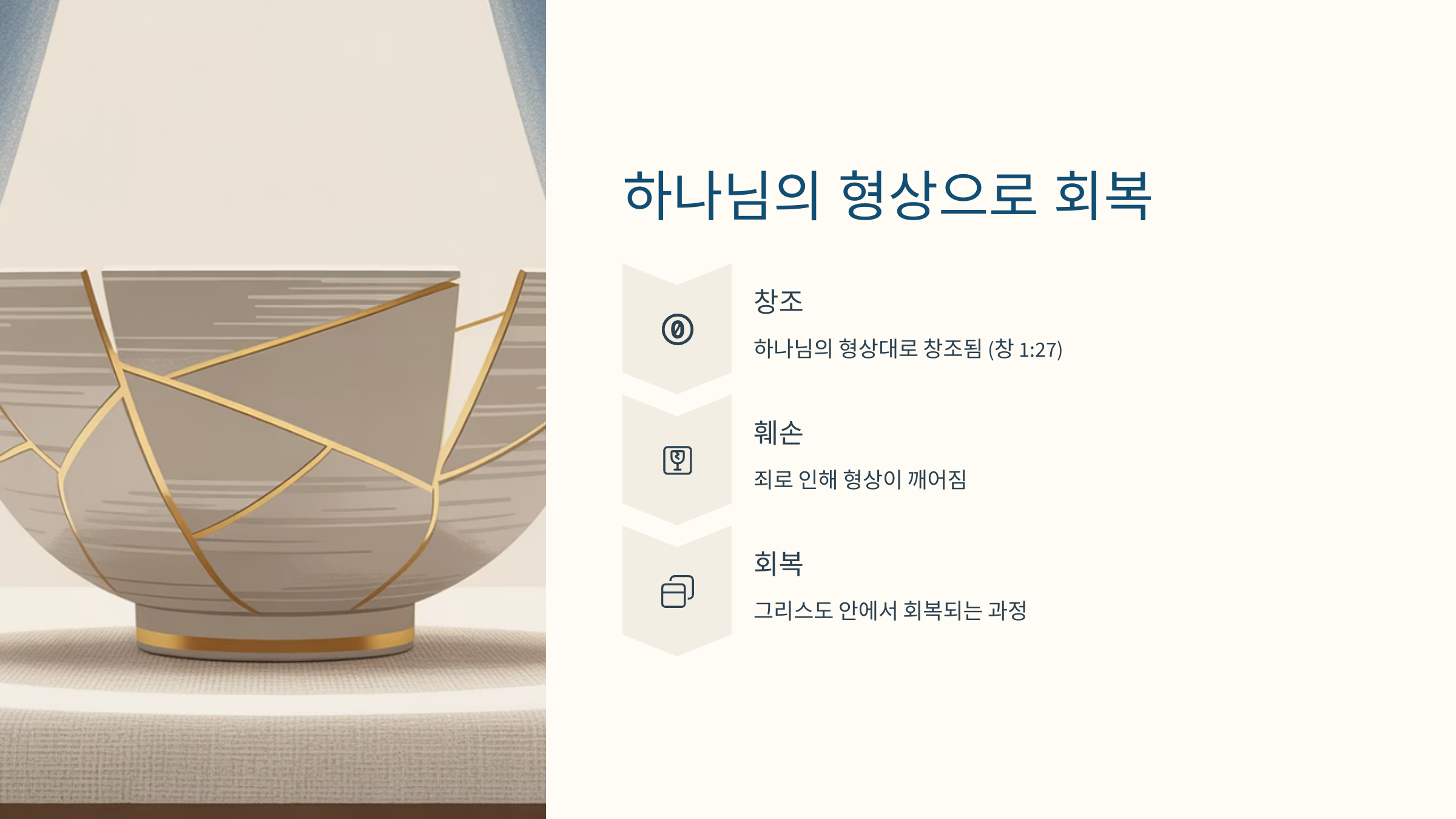 하지만 죄로 인해 그 형상이 훼손되었고, 이제 예수 그리스도 안에서 그 형상이 다시 회복되고 있는 중입니다.