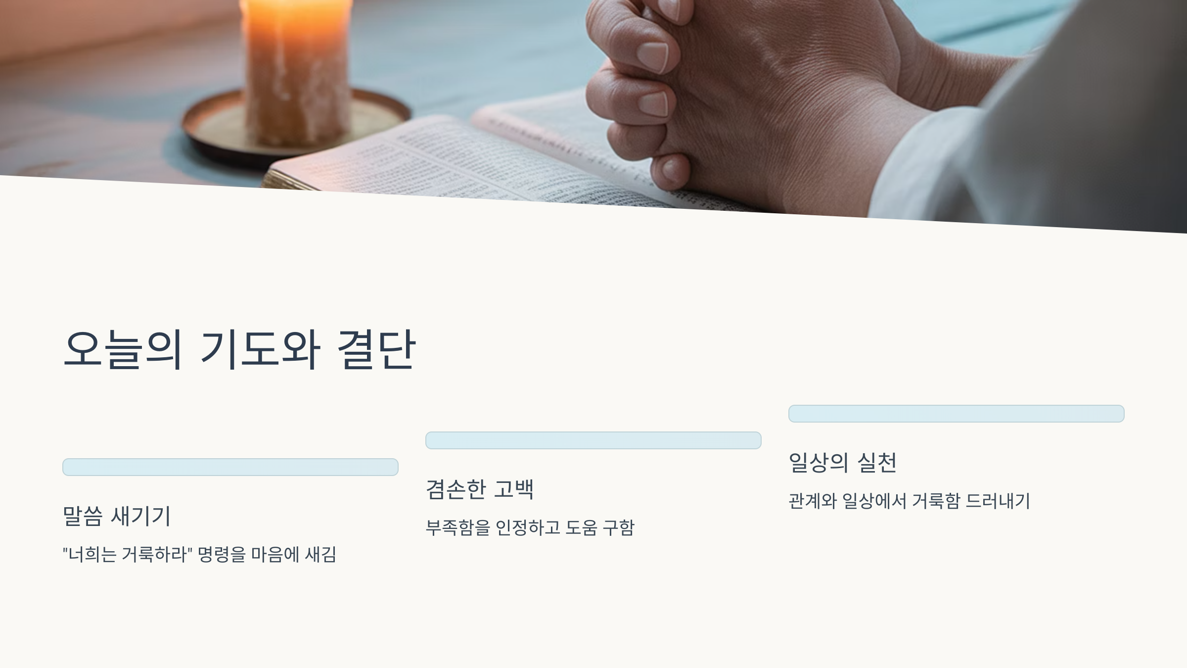 오늘 하루, 하나님을 닮아 거룩하게 살아가겠다는 결단을 새롭게 하시고, 그 거룩함이 관계와 일상 속에서 드러나는 복된 삶 되시길 축복합니다.