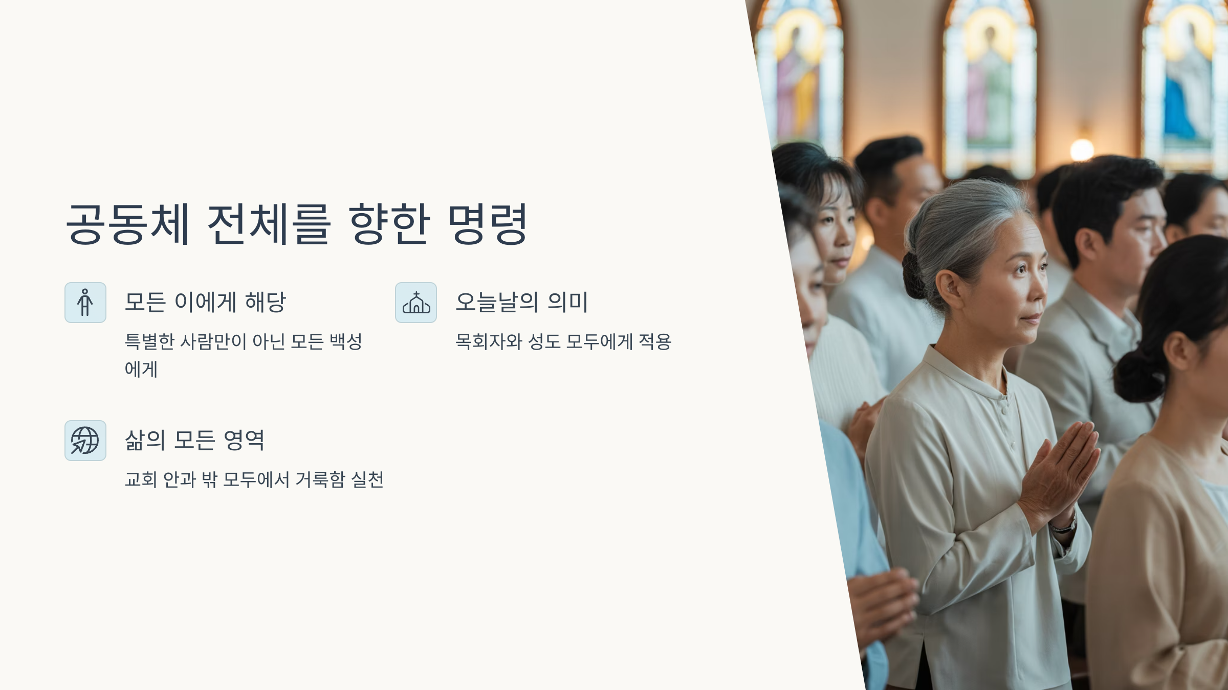 📌 즉, 거룩은 삶의 태도와 관계, 정직, 배려, 사랑으로 드러납니다.