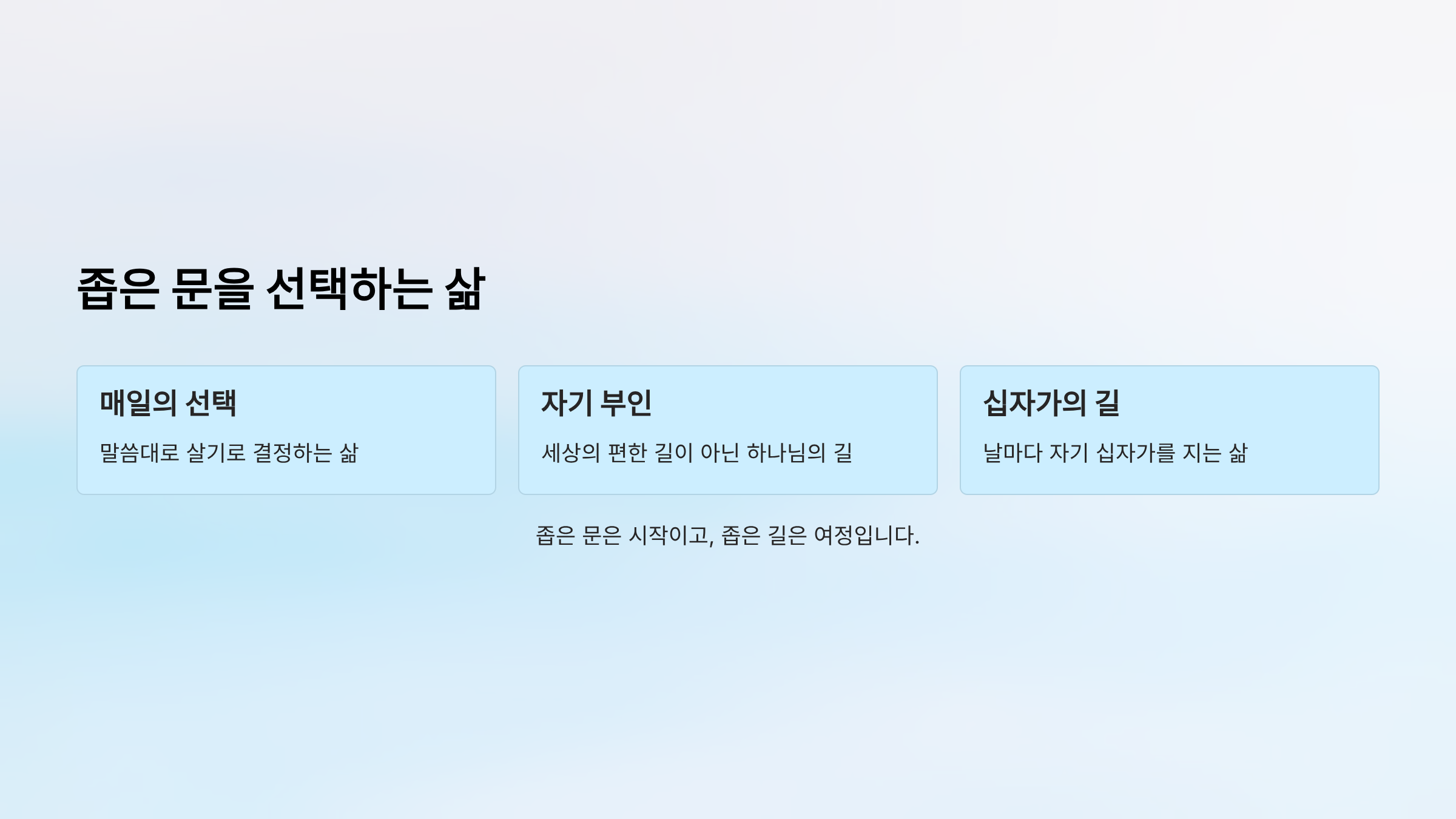 📌 좁은 문은 시작이고, 좁은 길은 여정입니다.