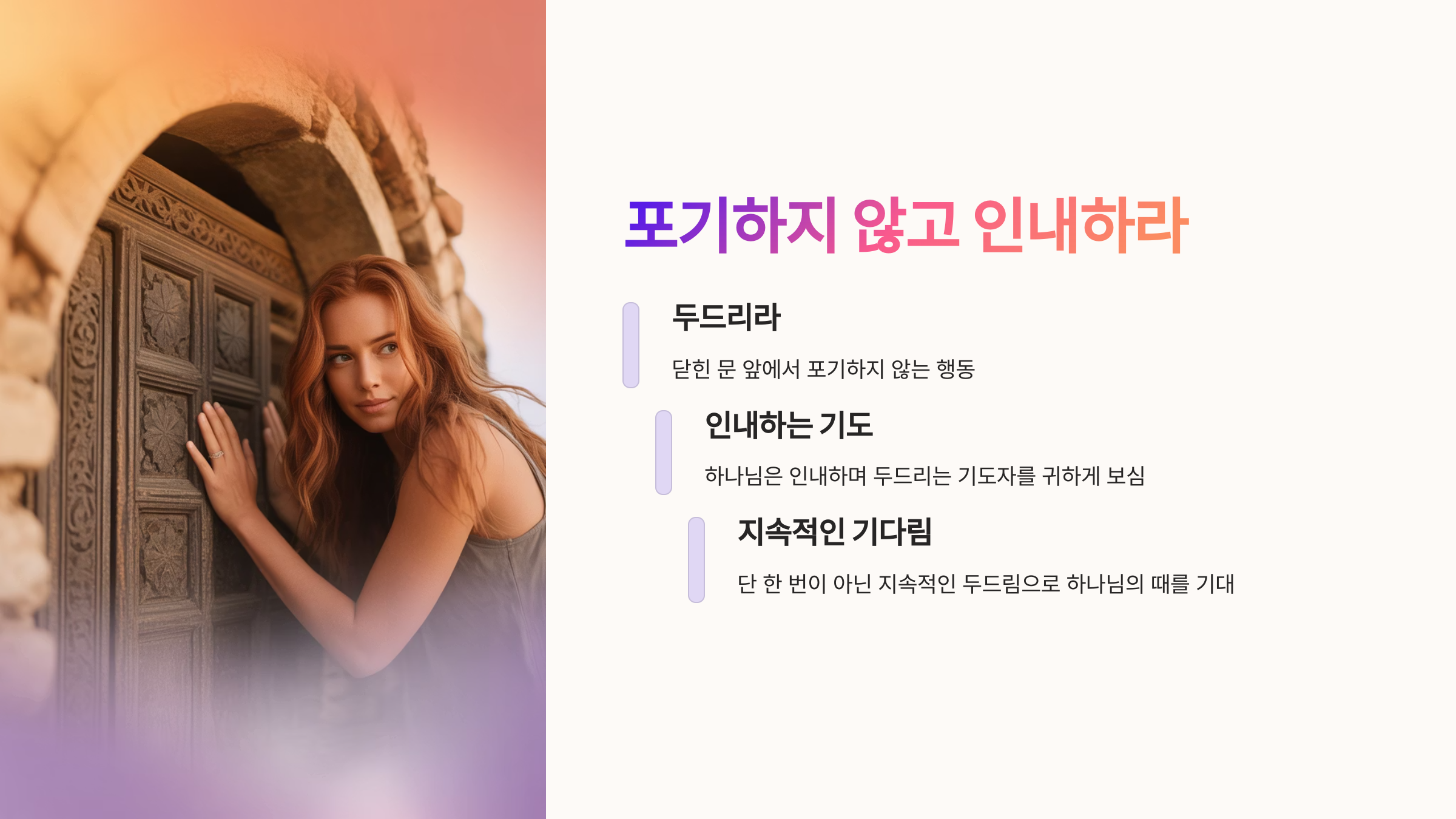 📌 하나님은 인내하며 두드리는 기도자를 귀하게 보십니다.