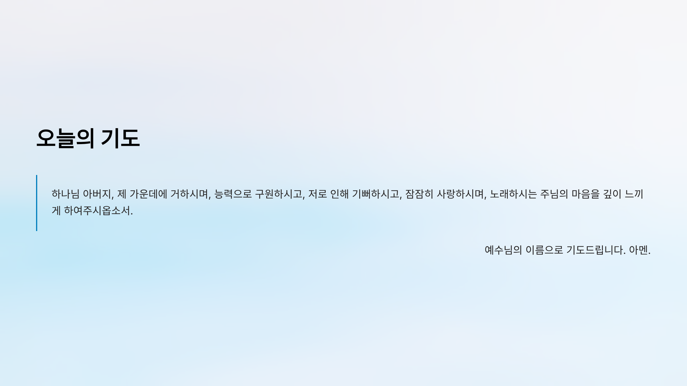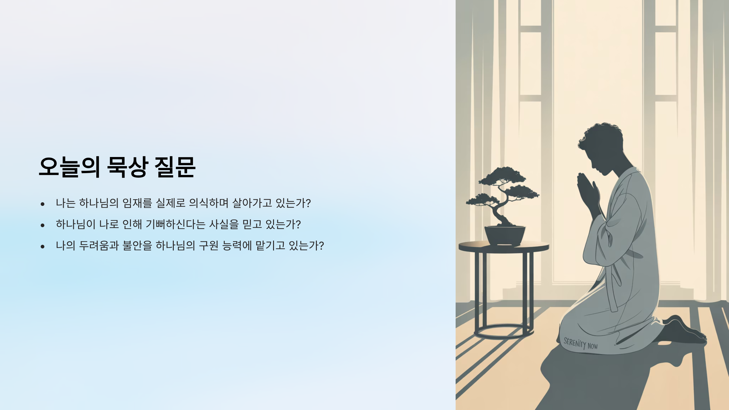 오늘 하루 이 진리를 붙들고, 담대하게, 그리고 감사하게 살아가시길 축복합니다.