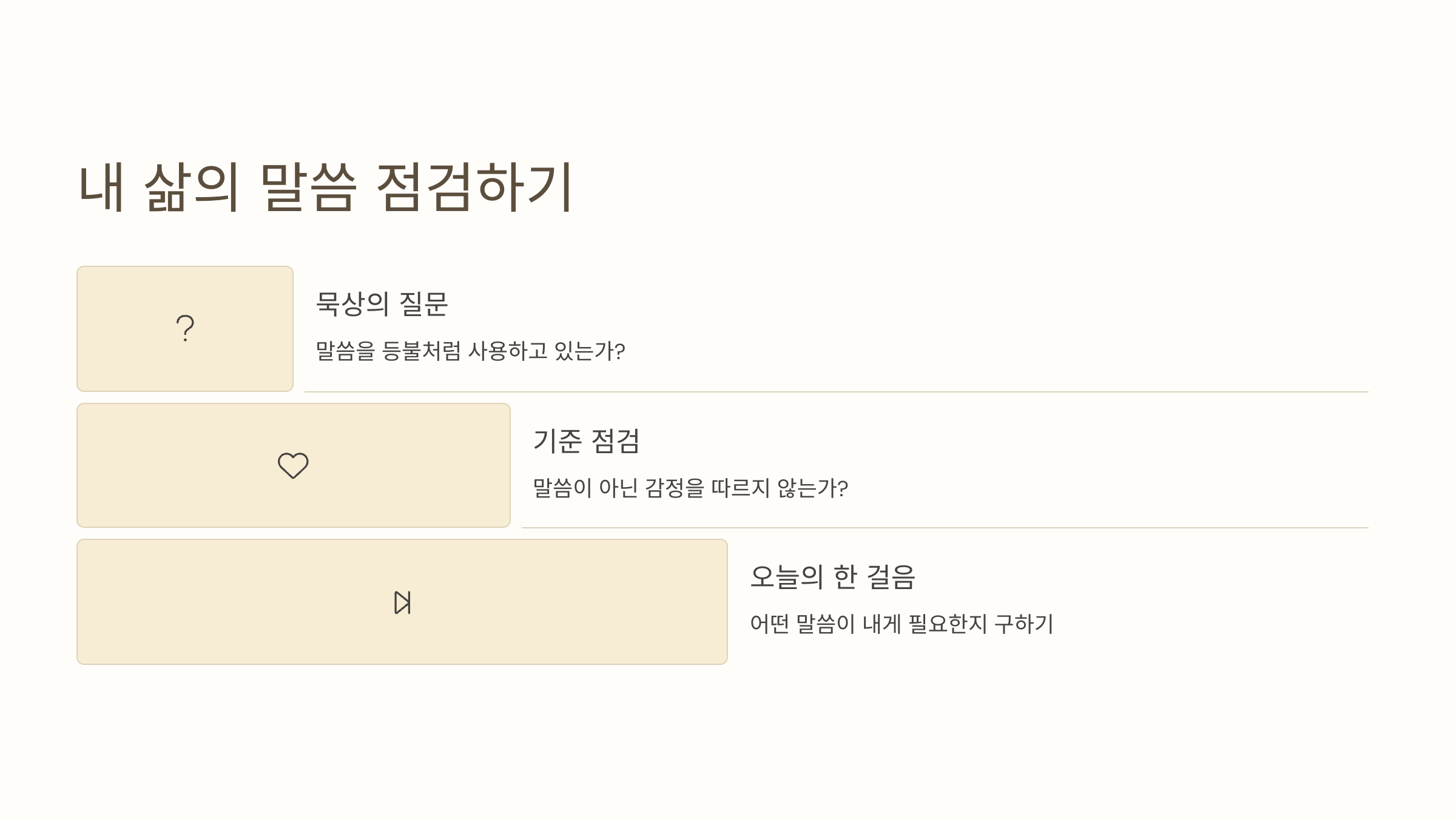 - 오늘 내가 해야 할 한 걸음을 위해 어떤 말씀이 필요할까?