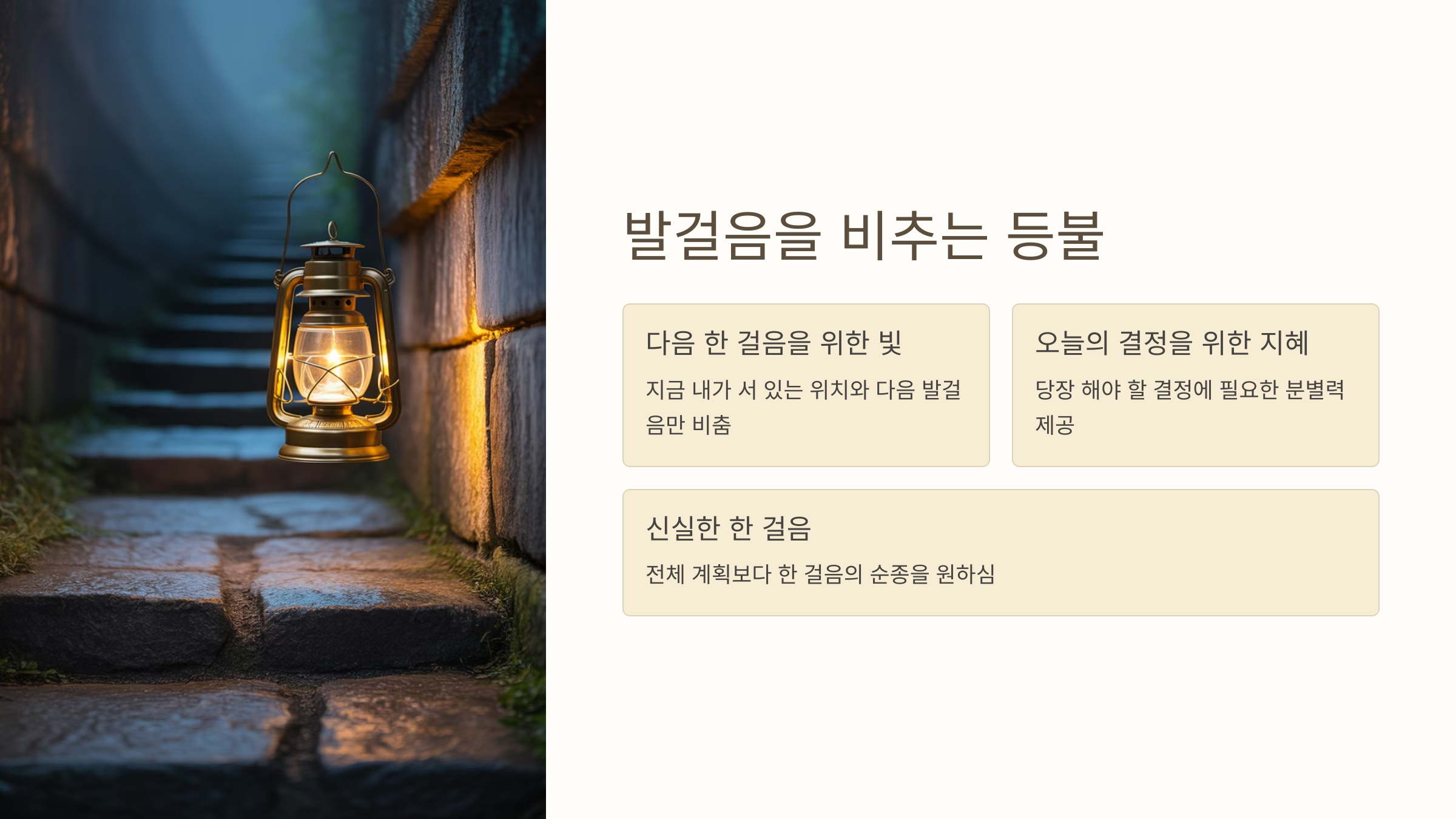 하나님은 인생의 전체 지도보다, 신실한 한 걸음을 원하십니다.