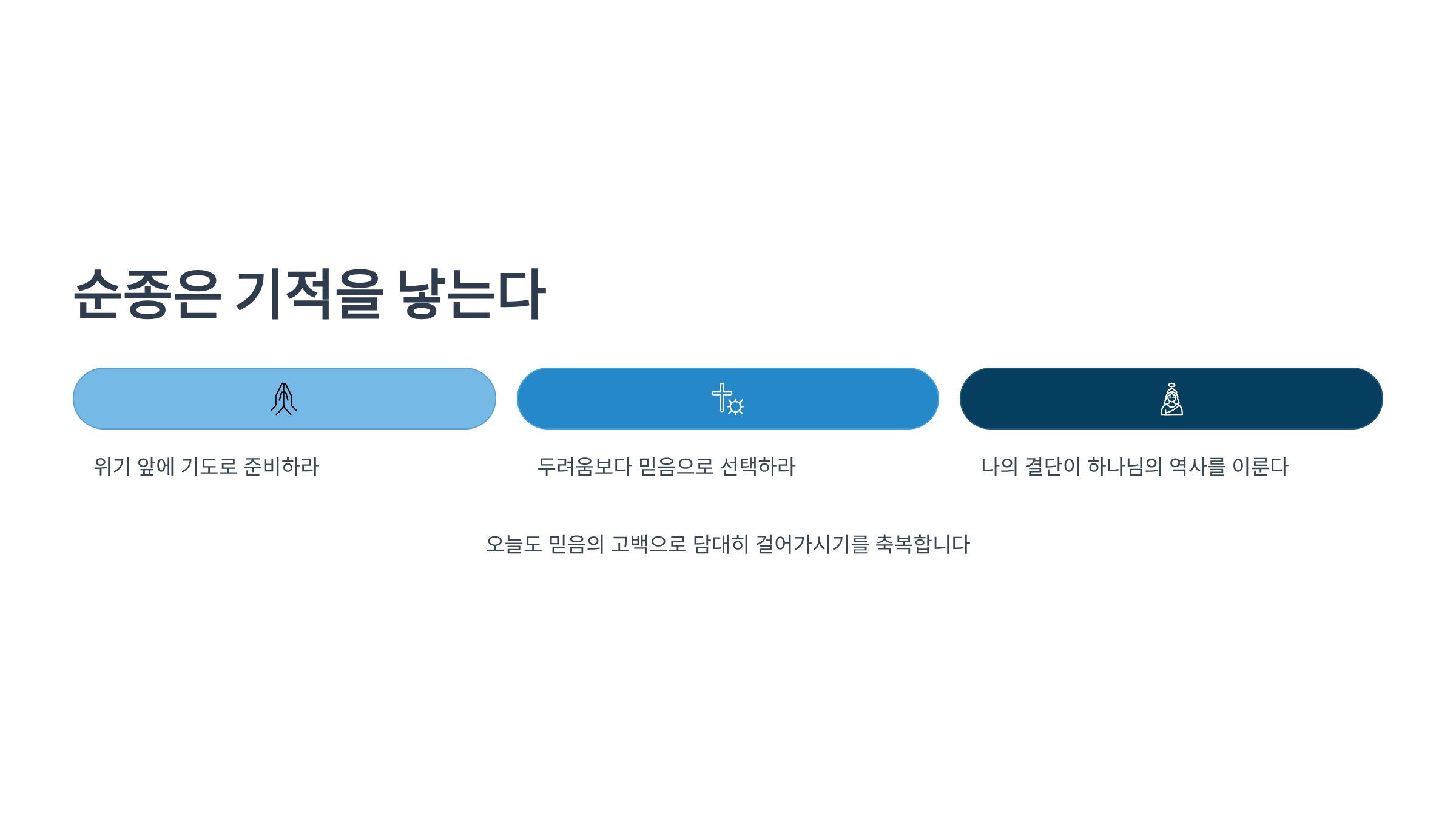 그러나 순종은 결국 하나님의 구원과 기적을 불러옵니다.