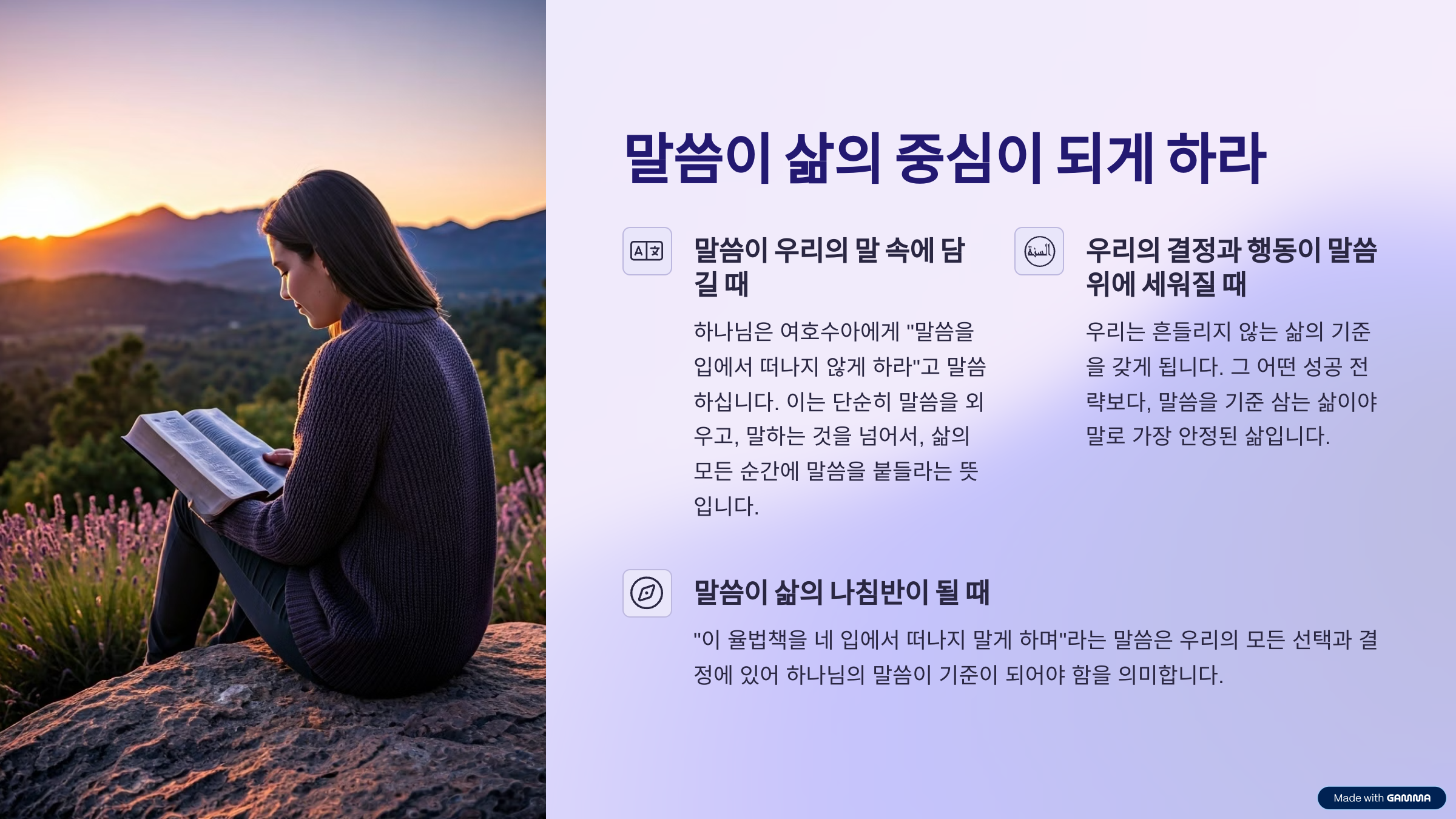 1. “이 율법책을 네 입에서 떠나지 말게 하며” – 말씀이 삶의 중심이 되게 하라
