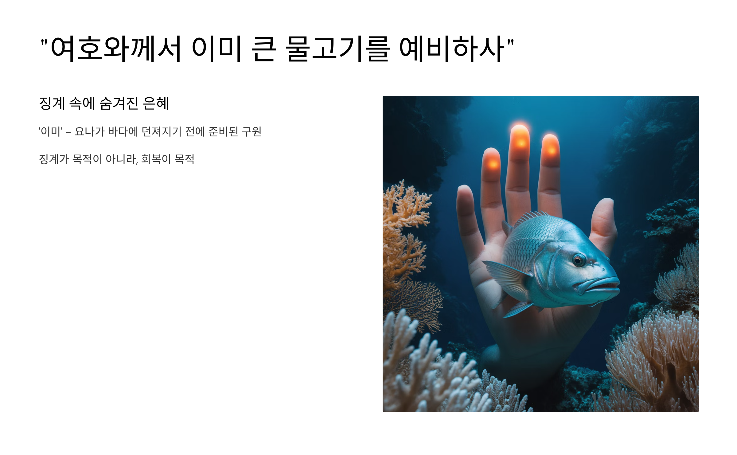 1. “여호와께서 이미 큰 물고기를 예비하사” – 징계 속에 숨겨진 은혜