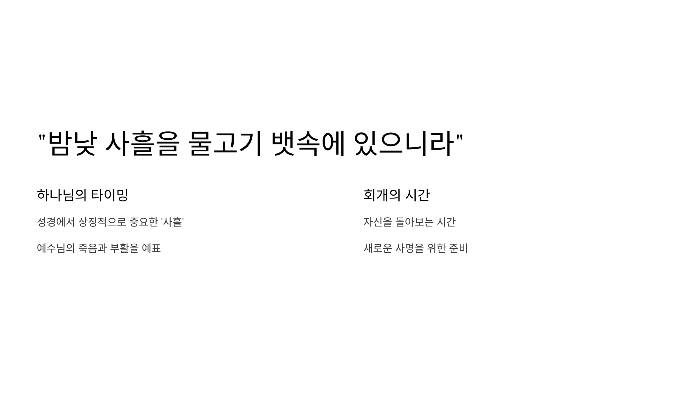 ‘밤낮 사흘’이라는 시간은 성경에서 상징적으로 매우 중요합니다.