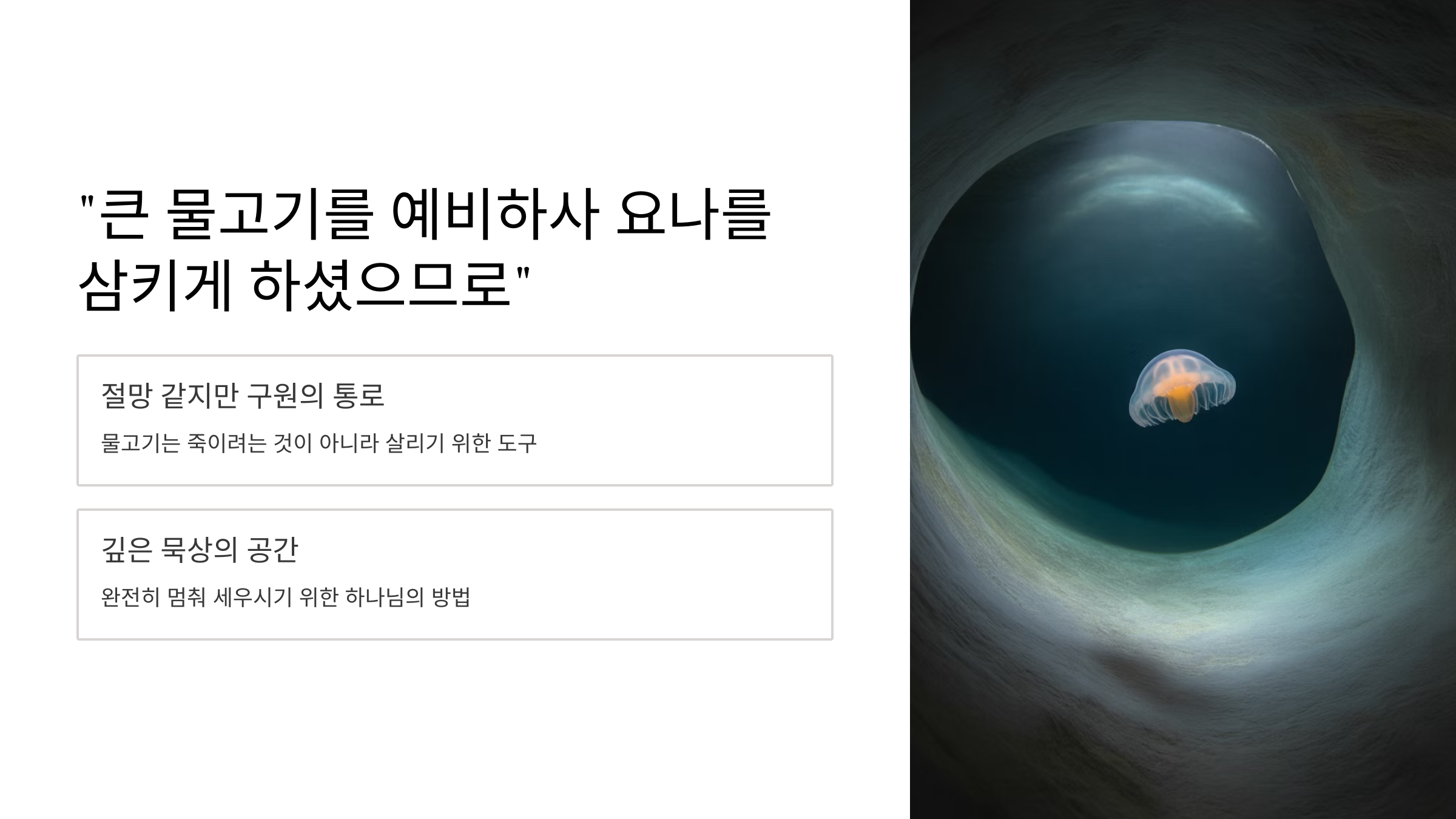 👉 그 뱃속은 하나님의 징계가 아니라 구원의 공간일 수 있습니다.