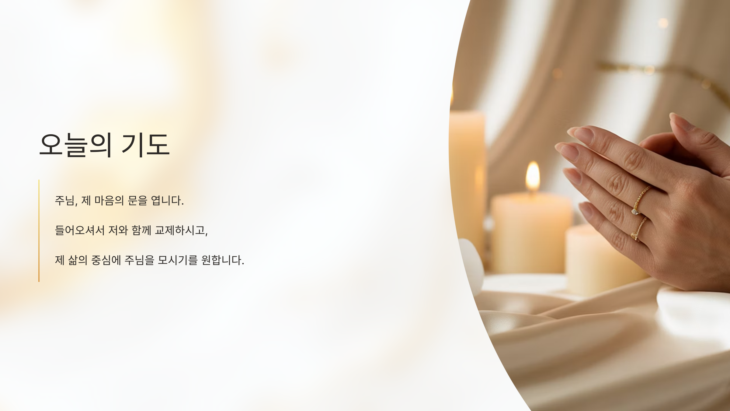 제 안에 들어오셔서 저와 함께 교제하시고, 제 삶의 중심에 주님을 모시기를 원합니다.