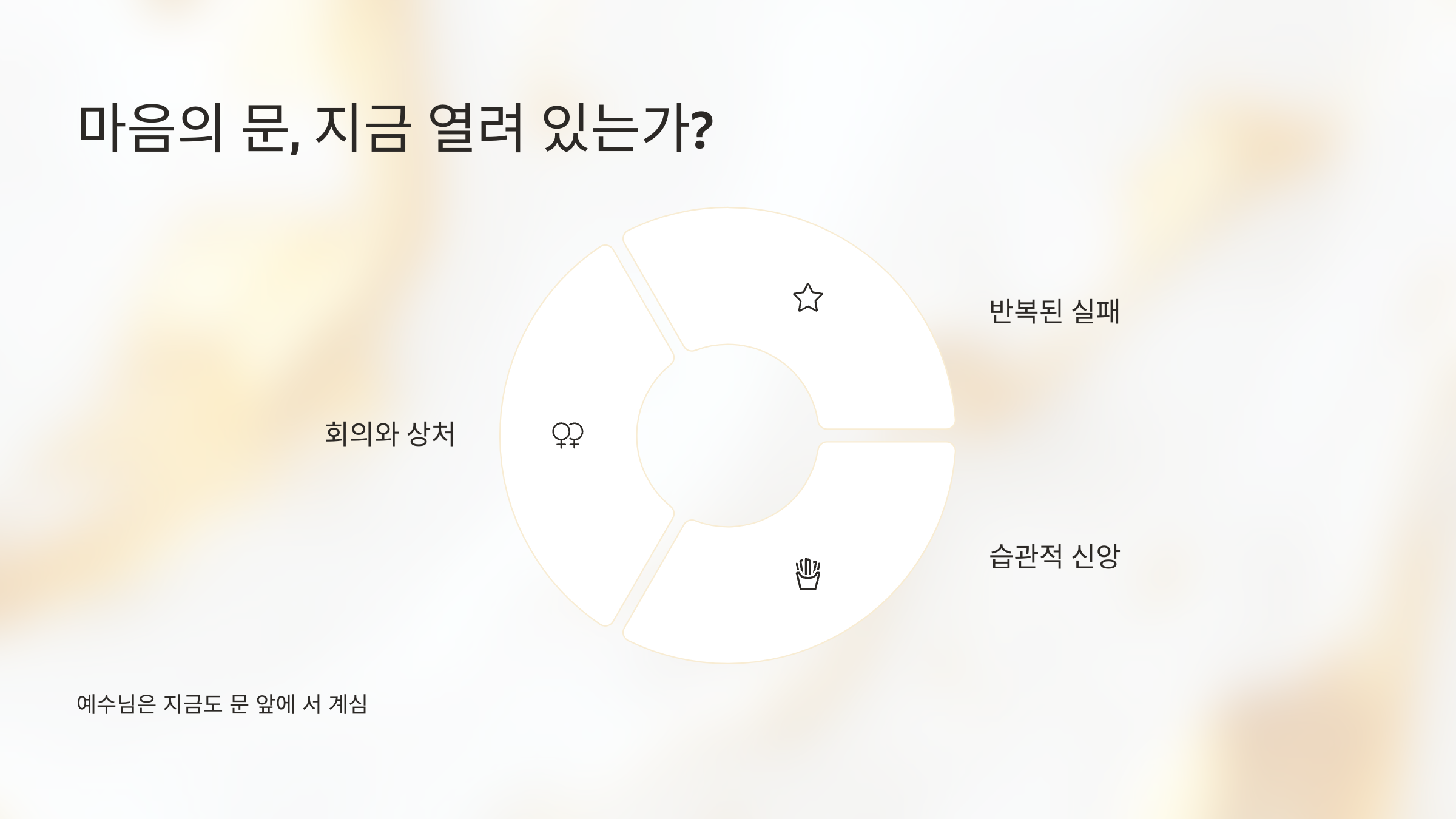 그러나 주님은 오늘도 조용히, 끊임없이 두드리십니다.