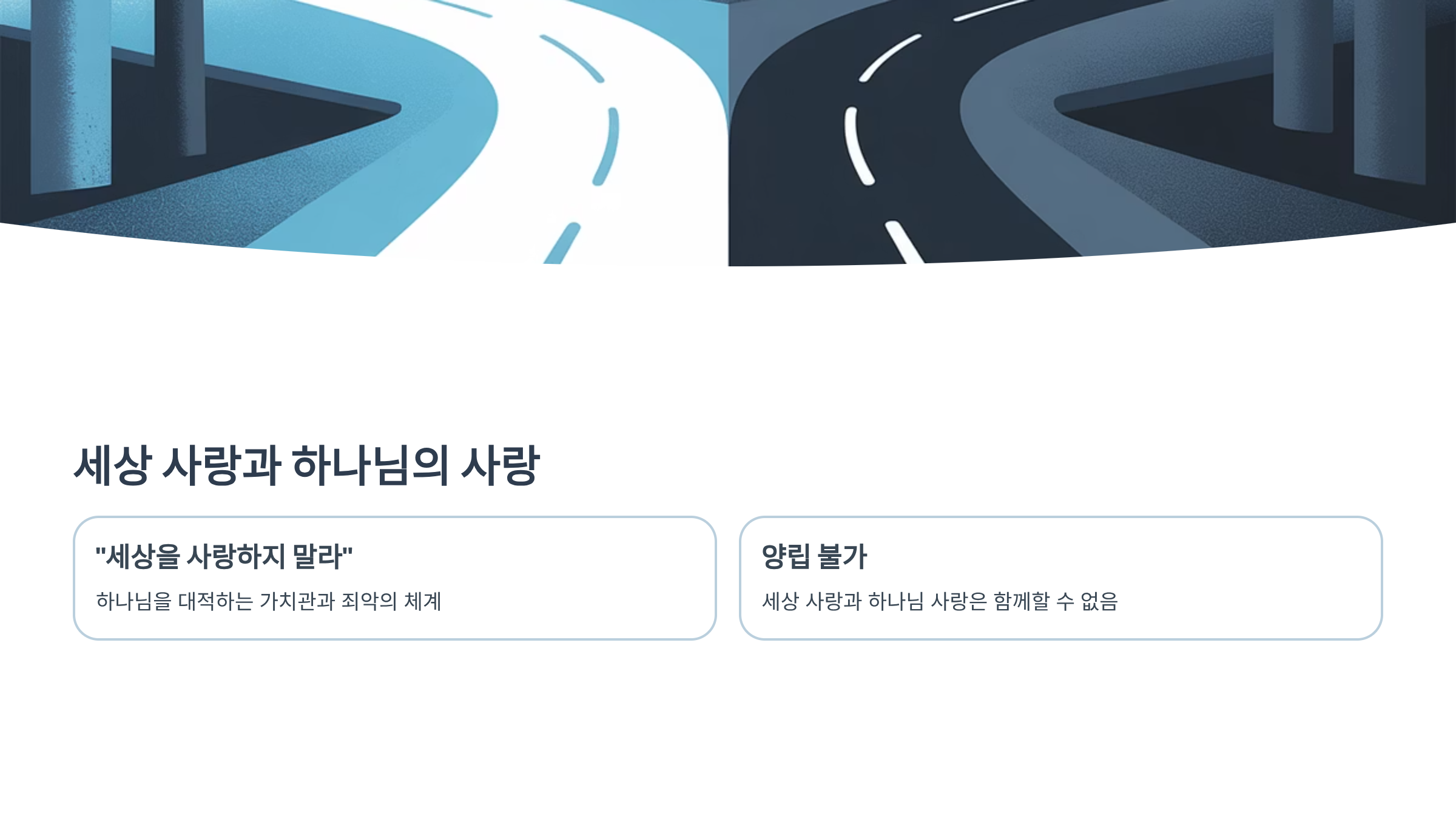 왜냐하면 세상 사랑은 하나님 사랑과 본질적으로 반대 방향이기 때문입니다.