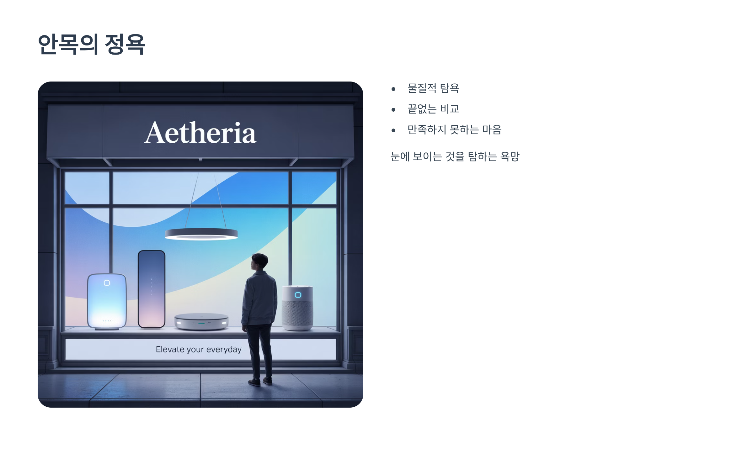 눈에 보이는 것을 탐하고 소유하려는 욕망입니다.