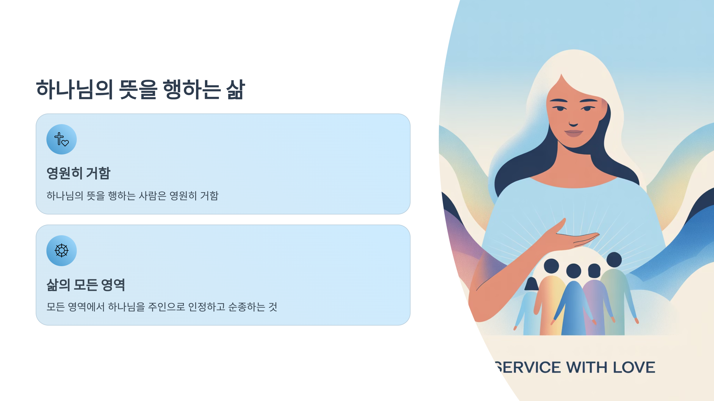 하나님의 뜻은 단순히 교회 안에서 봉사하는 것만이 아니라, 삶의 모든 영역에서 하나님을 주인으로 인정하고 그분의 말씀에 순종하는 것입니다.