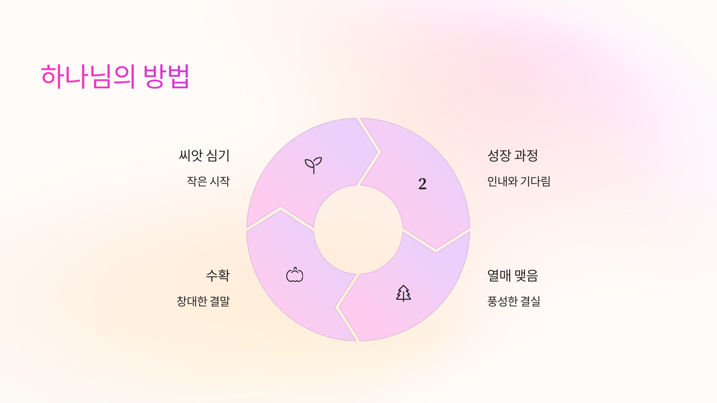 하나님의 계획은 항상 성장하고 성숙하며 열매 맺는 방향으로 흘러갑니다.