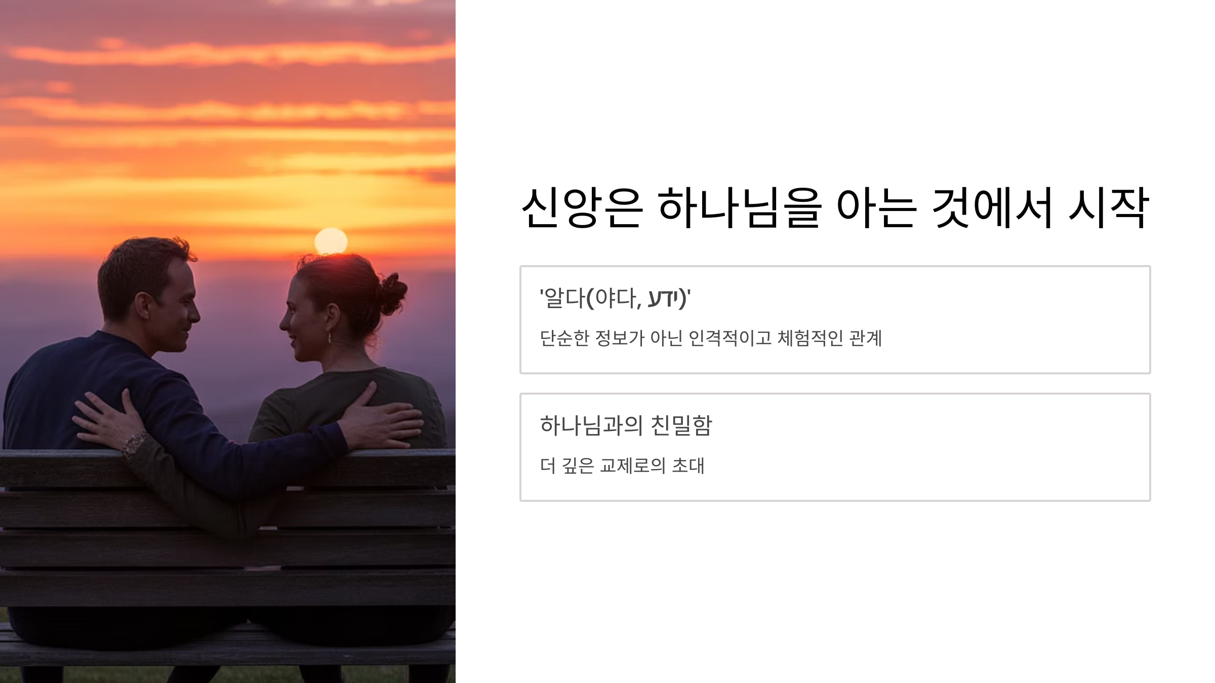 히브리어로 '알다(야다, ידע)'는 단어는 인격적이고 체험적인 관계를 의미합니다.