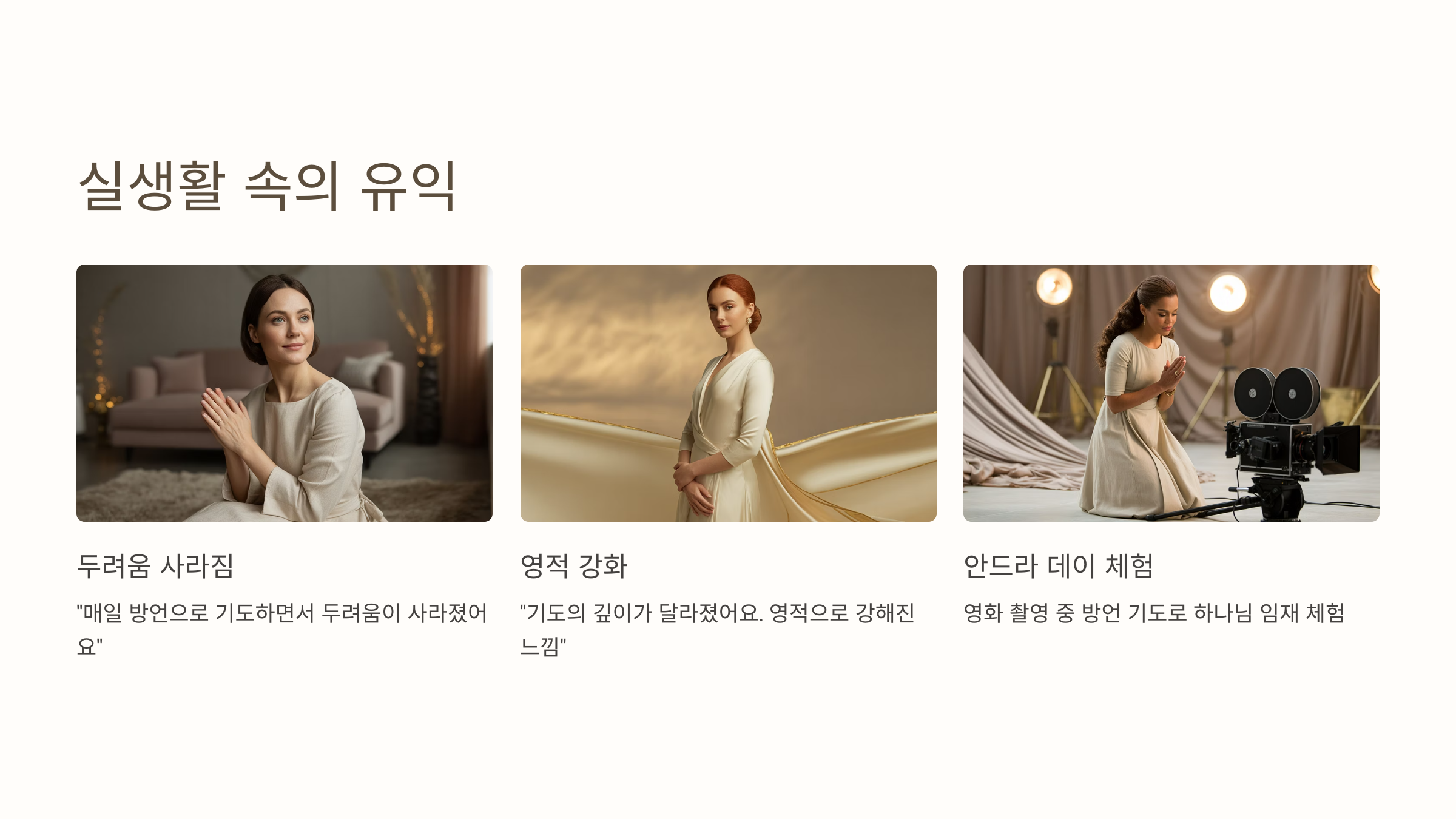 “정말 기도의 깊이가 달라졌어요. 영적으로 강해진 느낌입니다.”