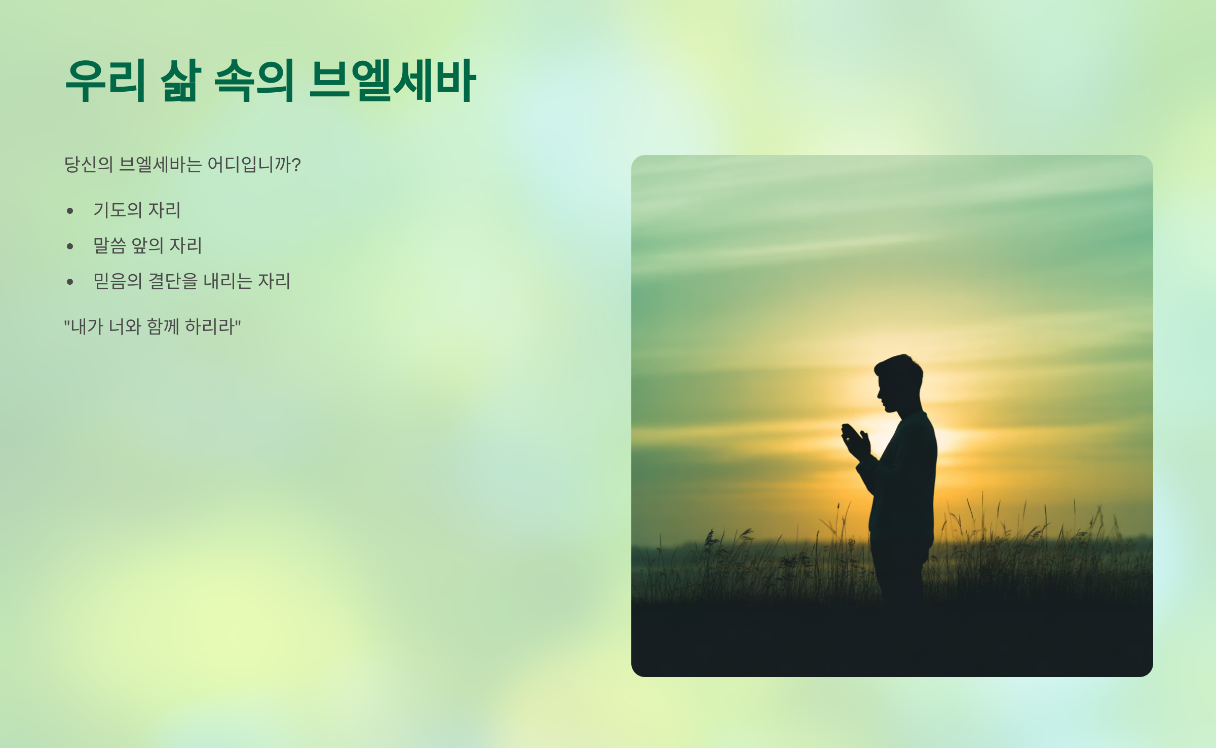 🕊️ 오늘의 적용 – 우리의 삶 속 브엘세바