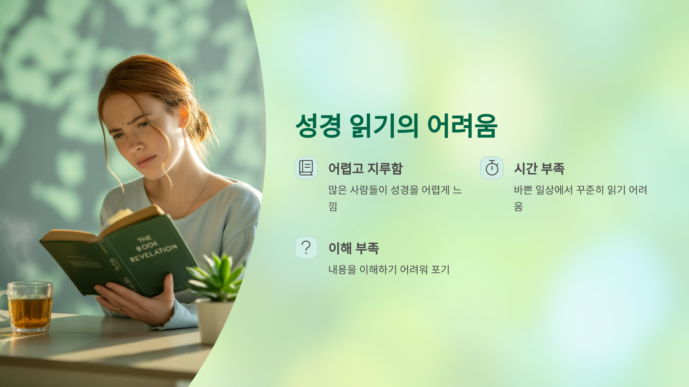 수많은 크리스천들이 “성경을 처음부터 끝까지 읽고 싶다”는 소망을 갖고 있지만, 실제로는 몇 번이고 시도하다가 포기하는 경우가 많습니다.